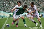 味スタの試合では立ち上がりこそFC東京が勢いで上回ったが、徐々に東京Vが優勢に。緑色のユニフォームを身に着けた選手たちが、相手の縦パスに対して抜群の反応を見せ、試合のペースを握った。素早い攻守の切り替えから攻撃を仕掛けて染野唯月や齋藤功佑がゴールを脅かしたが、ゴールは生まれず。スコアレスのまま前半を終えた。