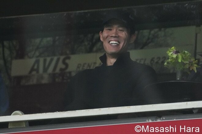 一方、久々の代表活動に参加予定だったものの、直前の試合で足を痛めて無念の回避となった冨安健洋。練習には合流しているが、この日はスタンド観戦となった。