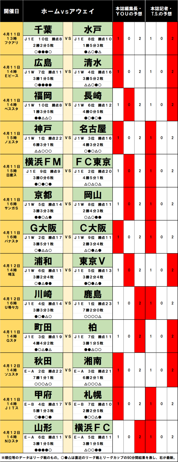 サッカーくじ「toto予想」(第1621回)4月11・12日(2)ついに無敗の王者・鹿島が… 茨城ダービーで見えた「異変」、横浜FMが波乱を!? (3/3ページ) 1ページ目から読む サッカー批評編集部 J1 J2 川崎フロンターレ 鹿島アントラーズ 横浜F・マリノス FC東京 2026.04.10 ■【画像】100円で「億獲り」のチャンス『サッカー批評』編集部「4月11・12日のJ1、J2・J3百年構想リーグ」toto予想はコチラ↓ ※画像/サッカー批評WEB編集部 この画像の記事に戻る 1 2 3 さっかーひひょうへんしゅうぶ サッカー批評編集部 1998年4月に創刊。「素晴らしいプレーと拮抗する興奮を、言葉で伝えることができたらと思う。サッカーをプレーする時、観戦する時と同様の情熱を持って、読んでもらえることを願っている」という創刊時の精神をそのままにWebでも記事を展開。日本サッカー協会100周年にあたっての「JFA100周年表彰」の媒体賞を受賞。 サッカーくじ「toto予想」(第1621回)4月11・12日 サッカーくじ「toto予想」(第1621回)4月11・12日(1)新監督の差が浮き彫りに、泥沼の広島と苦悩する浦和に「立ちはだかる難敵」 関連記事 サッカーくじ「toto予想」(第1621回)4月11・12日(1)新監督の差が浮き彫りに、泥沼の広島と苦悩する浦和に「立ちはだかる難敵」 サッカー批評編集部 「茨城ダービー、アツい」J1水戸が“鹿島打倒”の歴史的勝利! エースFW渡邉新太の会心の右足ミドル弾が熱い!「これは中々エグいシュートよ」「また新たな歴史を刻んだ」 サッカー批評編集部 「岳がこんなひょっこりポーズするなんて…」J1鹿島が4日間限定“推し活グッズ”販売! 等身大パネルの柴崎岳ノリノリ写真が話題!「じわるw」「もはやアイドル」 サッカー批評編集部 「たくさん泣きました」も「ここから」と決意! 2度目の“悲運”アキレス腱断裂の横浜FM遠野大弥に「俺たちは待っているぞ!」「大弥なら大丈夫!」とエール続々 サッカー批評編集部 「これは泣いちゃうよ」東京Vサポーター×谷口栄斗のゴール裏“熱い涙&盛大チャント”シーンが素敵!「俺はこういうヴェルディもめちゃ好き!!」 サッカー批評編集部 「フロサポ最高」「めっちゃ楽しそう」多摩川河川敷での旗振りダッシュ“車窓からの映像”が可笑しくて心温まる!「何がすごいって、社長が旗持って走っているんだぜ」 サッカー批評編集部