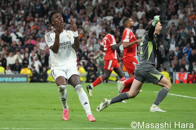 立ち上がりから攻勢に出たのはレアル。左サイドのヴィニシウス・ジュニオールにシンプルにボールを預け、ゴールに近づいた。が、バイエルンの守護神、マヌエル・ノイアーが得点を許さずにいると、高い位置でのバイエルンのプレスが次第にハマるようになる。さらに、レアルの中盤でボールロストやビルドアップでのパスミスも目立つようになり、バイエルンが流れをつかむ。