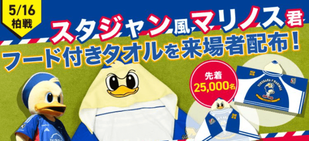 5/16(土)柏戦『スタジャン風マリノス君フード付きタオル』を先着25,000名様に配布✨👉 https://t.co/YXaVKTHUVw