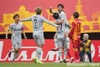 しかし、立ち上がりこそ右サイドの原輝綺から惜しいクロスが入ったが、試合はアビスパ福岡ペースで進行。名古屋の武器である中盤の守備力を上回るプレスを福岡は披露し、巧みなパス交換で前進してチャンスを作る。24分と35分にネットを揺らして2点を先行した。