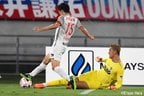 波多野はペナルティエリア内で稲垣祥に長い脚を伸ばしてスライディング・タックルを見せる場面もあった。積極的だから面白い。