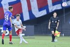 荒木が絶妙なスルーパスを見せた2点目も、左でボールをつないだ場面から始まる。永戸がボールを拾うと、ボランチの三竿健斗に一度預ける。三竿は、同じラインにいた荒木に出す。この時点で、三竿の近くに三田、永戸の近くに原、荒木の近くに中村がいた。前半と同じ構図だ。ただ、永戸に戻されて縦に行かれたときを想定してか、ボールを受けに行く荒木に、中村はついていかなかった。あるいは、エヴェラウドが左に流れていたため、そのケアもあったかもしれない。