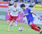 いずれにせよ、荒木はフリーで持てると分かるやここから反転、ペナルティエリアの前のスペースに向けてボールを持ち出した。FC東京の高萩洋次郎はそれ以上の進撃を食い止めるために彼に寄せにいく。土居聖真とJ・アラーノが裏に抜け出す姿勢を見せて、FC東京のディフェンスラインを食い止める。しかし、荒木は速めのボールを一番遠くにいたJ・アラーノに送った。並の選手であれば、あそこで冷静にボールを扱えない可能性もあるが、J・アラーノは別格。ワントラップをして、ゴールに叩き込んだのだ。