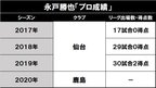 しかし、第17節G大阪戦で永戸は全治6か月の怪我を負う。そしてこれ以降、この年の試合に出ることはできなかった。結局、出場試合数は「17」で、先発は「16」。不本意な結果だった。