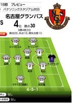 名古屋は3位のFC東京より3試合少ない状況で勝ち点差が「5」。G大阪もFC東京より3試合少い状況で勝ち点差が「9」。双方、上位争いをするうえで落とせない一戦となる。