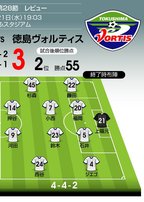 強さを見せたのは2位の徳島ヴォルティスだ。前節終了時点で19位のレノファ山口のホームへ乗り込み、3対0で快勝している。