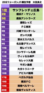 優勝サンフレッチェ広島。2位横浜F・マリノス、3位鹿島アントラーズ。優勝はこの3クラブから出るのではないか。もうひとつ「保険」をかけておくとすれば、FC東京か———。