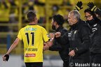 86分、第4審判がボードを掲げて選手交代が行われると、この日ようやく1階が解放されたゴール裏を含めたスタジアム中から万雷の拍手が送られた。ネルシーニョ監督に出迎えられたのはマテウス・サヴィオだ。