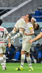 ダミアンは得点後、最初は「スーパーマンが服を破り飛んでいく」というゴールパフォーマンスを息子に向けて披露したが、その後、得点機会を作った長谷川の元に寄っていく。そして、この188センチ・90キロのストライカーは164センチ・60キロの長谷川竜也を軽々と持ち上げたのだ。
