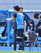 前半が終了して後半を迎える際、ピッチに向かおうとする川崎の登里享平を見かけるや、呼び寄せてハグ。さらに谷口彰悟や三笘薫も呼び止めてグータッチをして話しかけてみせた。