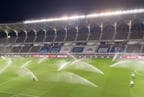 6月13日の日曜日、私が監督を務める女子チームは、練習試合の試合直前にピッチに水をまいてもらった。係員がメインスタンド(といっても、100人ほどが座れる観客席があるだけなのだが……)裏にある操作パネルを開き、スイッチを入れると、両タッチライン外のハーフラインあたり、そして両ゴール裏に設置された散水装置から、まるで消防車の放水のように勢いよく水が飛び出す。放出された水は数十メートルを飛びながら、数分のうちにピッチ全面をカバーする。