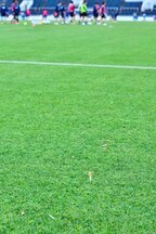 選手がボールを蹴る青々とした芝生の間からピョコンと姿を現すのは、なんとキノコ。それも、1つ2つではなく、大量に発生している。キノコの種類は分からないが、形状から最低でも3種類以上が生えており、中には5センチ以上に成長しているものも。選手やスタッフが気づかずに踏んで、哀れな姿になったものもあった。
