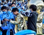 Jリーグ史上初となる監督として4度目のリーグ制覇を達成したとあって、ふだんは怖い表情を見せる鬼木達監督も、この日は笑顔。選手と一緒に場内を一周した。