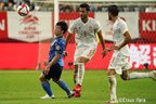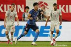 手さぐり状態にも見えた試合の流れに光を放ったのは堂安律だった。42分、堂安は左サイドを突破した久保建英からのボールをドンピシャの左足で振り抜いた。久保がいい形で抜け出して送ったクロスだった。