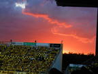 さて、町の景色と同様、スタジアムも、そしてスタジアムから見る景色も、私は圧倒的に「たそがれどき」を愛するのである。去る7月12日、私は大阪・長居の「ヨドコウ桜スタジアム」で日本とホンジュラスのU−24代表戦を取材した。このスタジアムは正式には「長居球技場」なのだが、つい最近まで「金鳥スタジアム」と呼ばれ、東側にメインスタンドがある「規格外」のスタジアムだった。