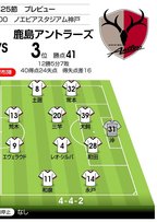 2強の神奈川勢を追うのが、鹿島や神戸だ。4位のサガン鳥栖とともに、勝ち点41で3チームが並んでいる。