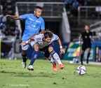 先制したのは横浜FCだ。38分、裏に抜け出したジャーメイン良の折り返しをサウロ・ミネイロが合わせて豪快にネットを揺らす。最下位に沈むホームチームが貴重な先制ゴールを奪い、そのまま前半を折り返す。