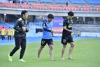 ピッチに3人の姿があった。それは、山根視来、旗手怜央、そしてスタッフ。3人は芝生の上をゆっくりと走って周回。しかも、山根と旗手は素足だ。軽く談笑しながら、芝を見つめるようにして一歩一歩足を前に出していた。