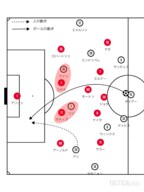 コンテ監督はこの試合で、今季初めてとなる5-3-2の布陣を採用。試合の展開はリバプールがボールを保持してトッテナムが守備を構えるという分かりやすいものになった。リバプールは相手3センターの脇からSBがクロスを放り込みチャンスを作っていく。対するトッテナムはピッチ中央からミドルプレスをかけつつ、前進された場合は自陣低い位置で5-3ブロックを敷いてクロスを跳ね返してミドル/ロングカウンターから得点を狙う。