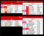 (画像でポジションと名前の間にある「完」は完全移籍、「期」は期限付き移籍、「復」は期限付き移籍からの復帰、「昇」は下部組織からの昇格を表す。「新」は高卒、あるいは大卒の新人選手。ポジション名の背景がピンクの選手は、今回新たに情報を更新した選手)