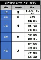 1位=西川周作(3060分)、2位=橋岡大樹(2745分)、3位=槙野智章(2206分)、4位=山中亮輔(2012分)、5位=興梠慎三(1957分)、6位=レオナルド(1802分)、7位=岩波拓也(1793分)、8位=エヴェルトン(1774分)、9位=汰木康也(1771分)、10位=長澤和輝(1716分)、11位=柴戸海(1708分)、12位=トーマス・デン(1685分)、13位=武藤雄樹(1361分)、14位=関根貴大(1324分)、15位=マルティノス(1308分)