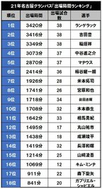 コロナ禍による特別なレギュレーションが用いられた2020年シーズン同様に、交代枠が「5」に拡大するなどした2021年シーズン。圧倒的強さを見せた川崎フロンターレが優勝したが、2020年シーズンとはかなり違った順位結果となった。そこで、それぞれのチームで選手の出場時間数をランキング化。ピッチにより長く立った選手を探ってみる。