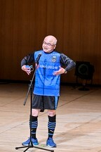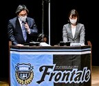 川崎フロンターレのユニフォームに身を包んだ堤理事長は、まずは「私はフロンターレが大好きです!!」と全身でアピール。さらに、川崎フロンターレからの営業の内容を告白。「サッカー選手で一番重要な“足”を優しく後ろから支える」という意味で、「太もも」のスポンサーになったという。