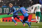 32分、伊東純也からのクロスを大きなアクションでスルーした大迫勇也。それを南野が左足で決めた。相手GKに触られたけれど、ボールはゴールに入った。