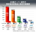 今回は、世界を驚かす40歳以上の選手5名を選出し、「推定最高移籍金」と「現在の市場価値」のグラフとともに紹介する。※移籍金と市場価値はtransfermarktを参照。2022年1月13日更新時点。一ユーロ130円で計算。(1)は2名、(2)は3名。