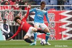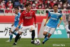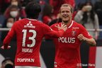 浦和の新しい10番ダヴィド・モーベルグは「デビュー戦」できれいなゴールを決めた。赤いスタンドにスウェーデン国旗が目立った。