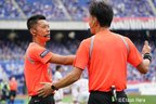 レフェリー自身のモニターでのチェックも無線機を手にして何度も繰り返された。結果、5分という長い時間を要して藤井のゴールはオフサイドで否定された。「関与」という微妙なものだった。コーナーキック後という混戦の中での「関与」は複雑なものだ。