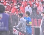 うなだれたままスタジアムを一周する選手がメインスタンド前を通る頃、GK西川周作がピッチを周った。勝てなかったとはいえ、いつも通りサポーターに笑顔で手を振りながら雨の中を歩いた。そんな西川が、北側のスタンドを通ったときだ。一瞬にして険しい表情になると、電光掲示板を乗り越えた。サポーターからの言葉に怒っているようで、激しい言い合いとなった。同時に、ブーイングはさらに大きくなる。スタッフらが止めに入る事態となり、険悪のスタジアムで一触即発の事態となった。