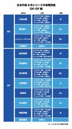 日本代表は6月シリーズの4連戦を2勝2敗で終えた。収穫もあれば、大きな課題も見つかった今シリーズ。誰が評価を上げてアピールに成功したのだろうか。今回は、6月シリーズに出場したGKとDFの評価をC-〜A+までの9段階で紹介する。
