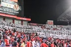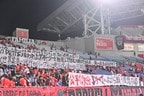 ゴール裏の熱いサポーターが集まるエリアに、6枚の横断幕が掲げられた。最も目立つ場所に広げられたのは、「公平な処分Jリーグへ心から願う理想の姿」というメッセージで、黒字で書かれたJリーグの文字には、赤く×印がされていた。