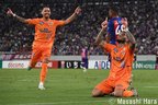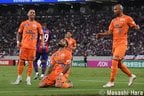 しかし、ボールはそこを越えていった。東京は、右サイドバックの長友佑都がセンターバックの奥をケアしていたが、その後ろから駆け込んで来たのはカルリーニョス・ジュニオ。長友よりも僅かに早く、かつ助走の勢いがあった分だけ長友よりも高くジャンプした清水の背番号10は、叩きつける完璧なヘディングで名手ヤクブ・スウォビィクの反応速度を上回った。
