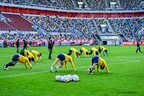 この日の練習場所となったのは、デュッセルドルフ・アレーナ。田中碧が所属する、ブンデスリーガ2部のフォルトナ・デュッセルドルフの本拠地スタジアムだ。5万1500人を収容できるスタジアムにはすでに日本とアメリカの両国旗が掲揚されていた。