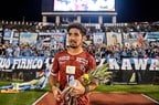 そのやり取りは、1-0で川崎が勝利した試合終了のホイッスルを告げたあとのことだ。高知の選手が、川崎サポーターが多く集まるゴール裏エリアの元に、監督も含めて訪れた。遠路駆け付けたサポーターの前で一列になって挨拶をする高知の選手。その健闘と姿勢に、川崎サポーターも応えた。通常は自チームの活躍した選手に贈るパイナップルをキャプテン横竹翔に渡したのである。