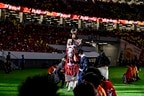 中断期間を終えて再会初戦を勝利で飾りたい両チーム。そんな中で白星を手にしたのは1-0で90分間を終えた名古屋グランパスだったが、その試合前、国立競技場のピッチレベルに白馬で現れた人物がいた。それは、歌手で俳優の松平健。