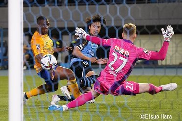 3分、小林悠の早い先制ヘッダーで試合はもう終わってしまったと思った。 だが、それから先、川崎は追加点を奪えない。車屋紳太郎、谷口彰悟、山根視来がボールを左右に移動させるが、攻撃のタイミングを見い出せない感じだ。 ピッチには仙台のGKヤクブ…