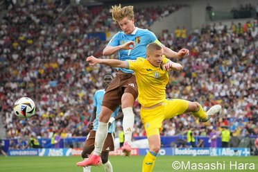 【UEFA EURO2024現地撮】天才デ・ブライネがフリーキック、スルーパスから得点を狙うも…全チームが勝点4で並ぶ大混戦!敗退が決まったのは…【ウクライナ代表vsベルギー代表】PHOTOギャラリー