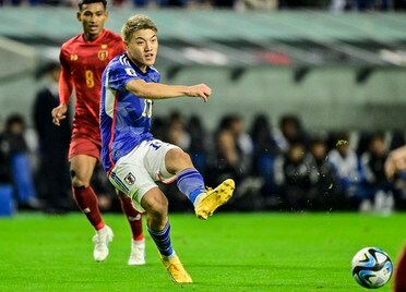 サッカー日本代表は11月16日、2026年北中米ワールドカップ・アジア2次予選の初戦でミャンマー代表に5−0で完勝。トドメの5点目を奪ったのが、堂安律の“左足”だった。 右ウイングとしてスタメン出場した背番号10の堂安は、試合開始早々の直…